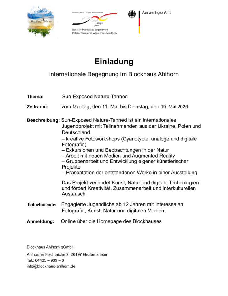 Naturaleza Expuestas al Sol – BronceadoDe 11:05 a 19:05.2026 en el Blockhaus Ahlhorn Inscripción Regístrate como participante