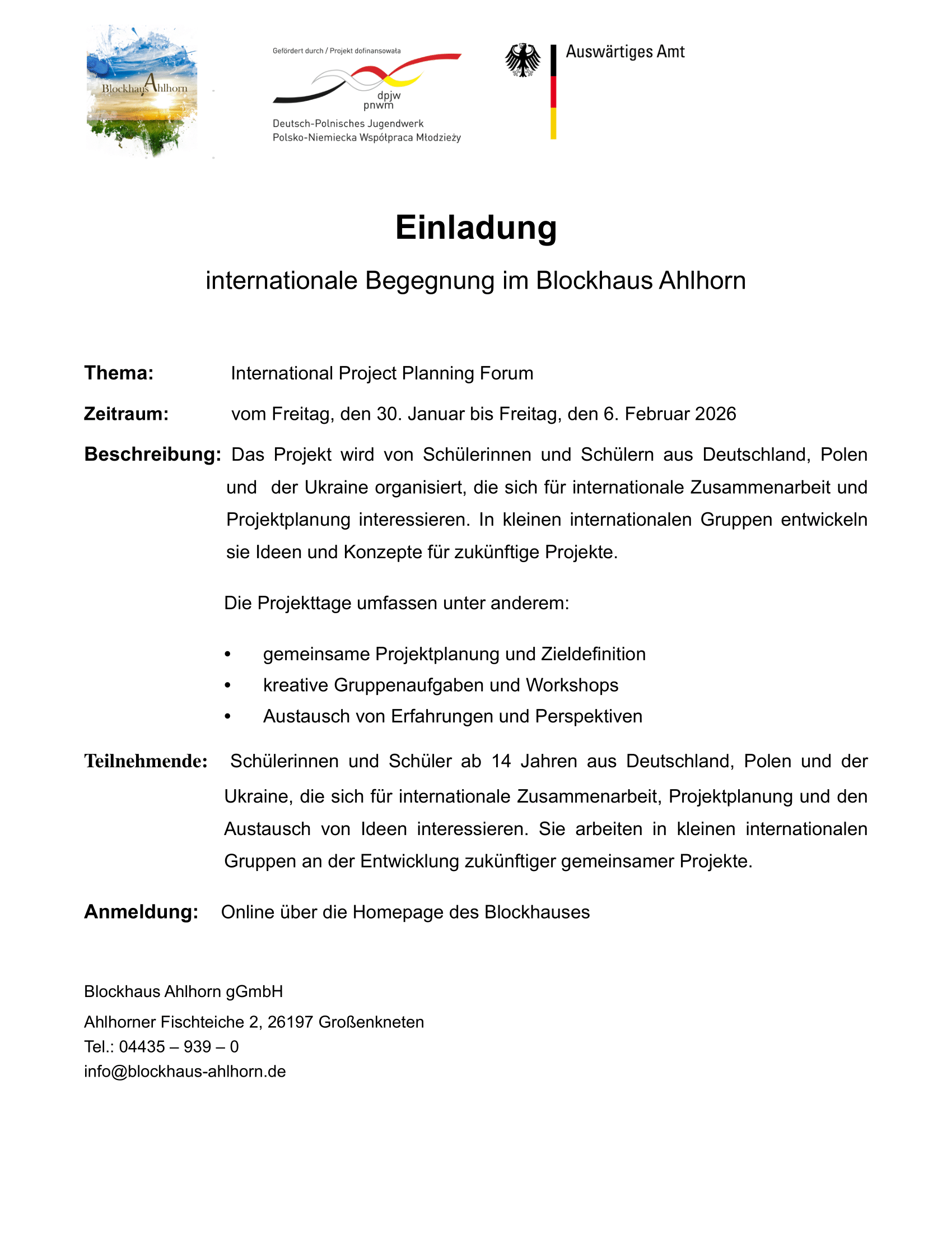 Projekt jest organizowany przez studentów z Niemiec, Polski i Ukrainy, zainteresowanych współpracą międzynarodową i planowaniem projektów. W małych międzynarodowych grupach rozwijają pomysły i koncepcje na przyszłe projekty.