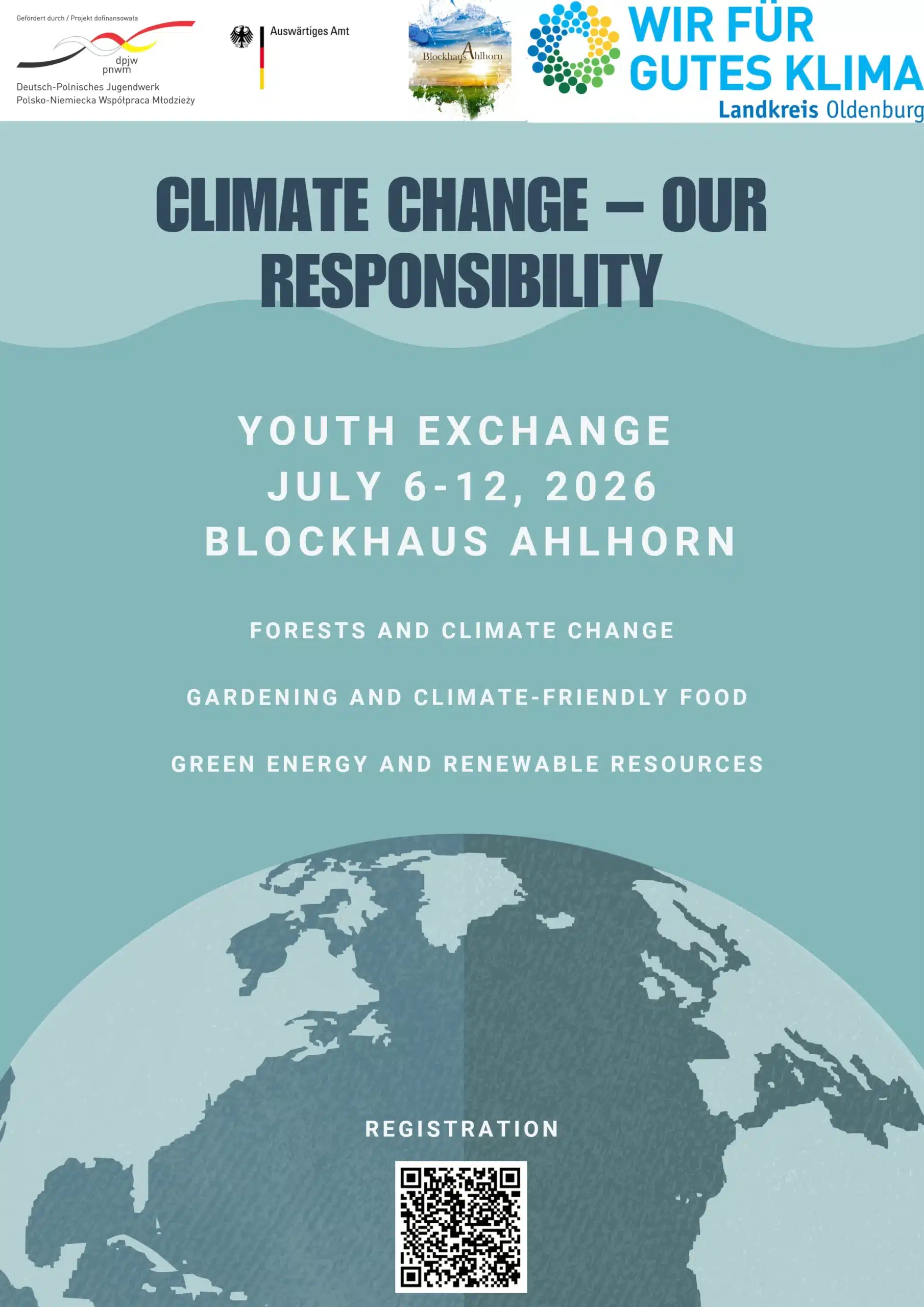 Зміна клімату – Наша відповідальністьЗ 06.07 по 12.07.2026 у Блокхаусі Альгорн Беріть участь Зареєструватися як учасник Ми хотіли б сформувати міжнародні команди для проєктів Зареєструйтеся як волонтер